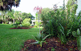 It's native.....at least to the Western Hemisphere: southern Mexico through most of Central America. And the fruit is delicious, if the oxalic acid crystals don't disable your esophagus. At least the fruit smells good. Wilcox is a nice little nursery that sells a lot of Florida native plants. They sell other things too like this Monstera. I've noticed that Philodendrons are a good way to stretch into USDA Zone 9b or even 10. I see big P. selloum around and the occasional giant Pothos. They're not really hardy here, but hey....you gotta give it a try!This is just a cool plant. It rained yesterday afternoon just like it's supposed to. Not at 4:00, more like 6:30. We got an inch and a half; they day before we got a half inch with only traces the two previous days. Still, things look very happy and I can only imagine how wonderful this garden would be if I were here more often to water when things got tough. Well...maybe someday.